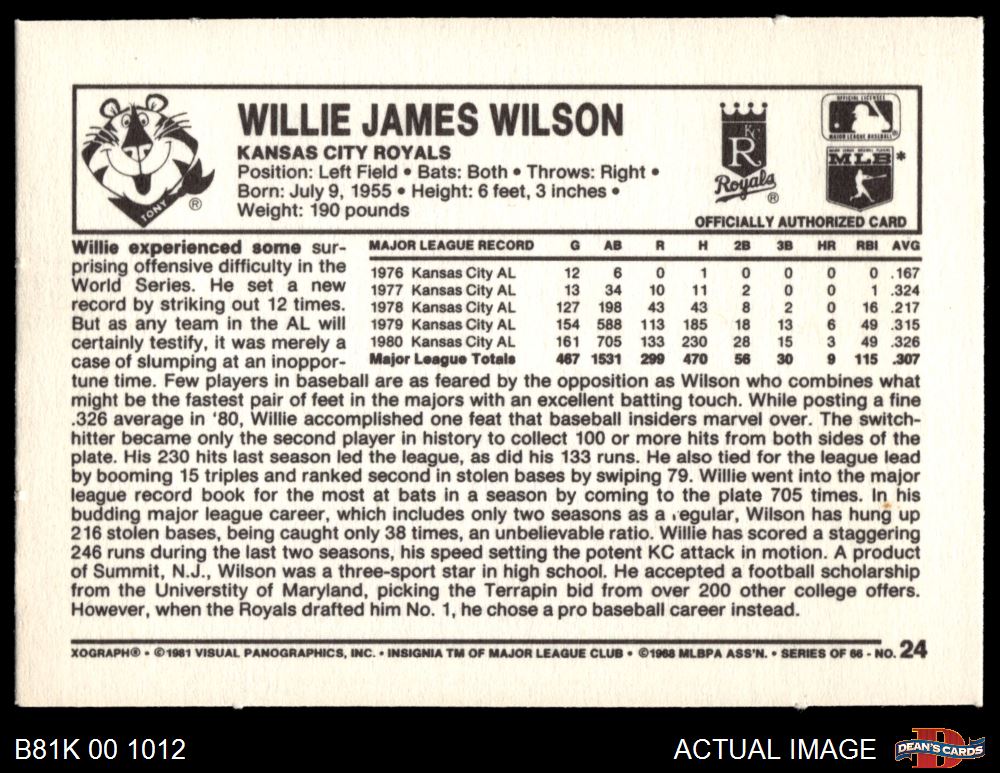 1981 Kelloggs #24 Willie Wilson
