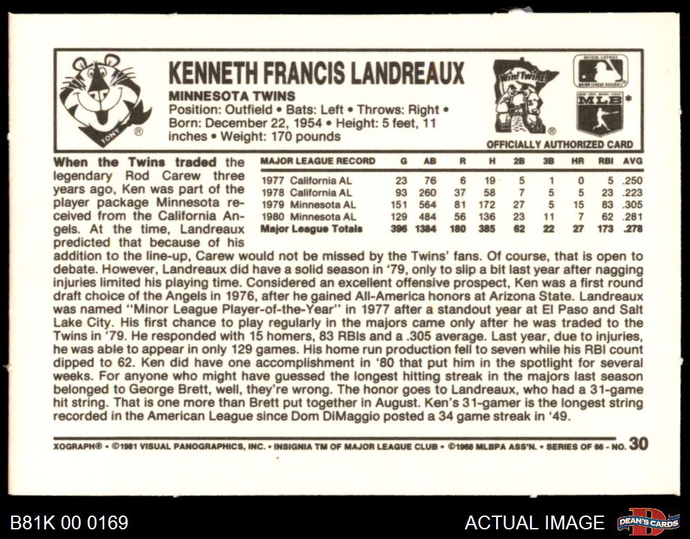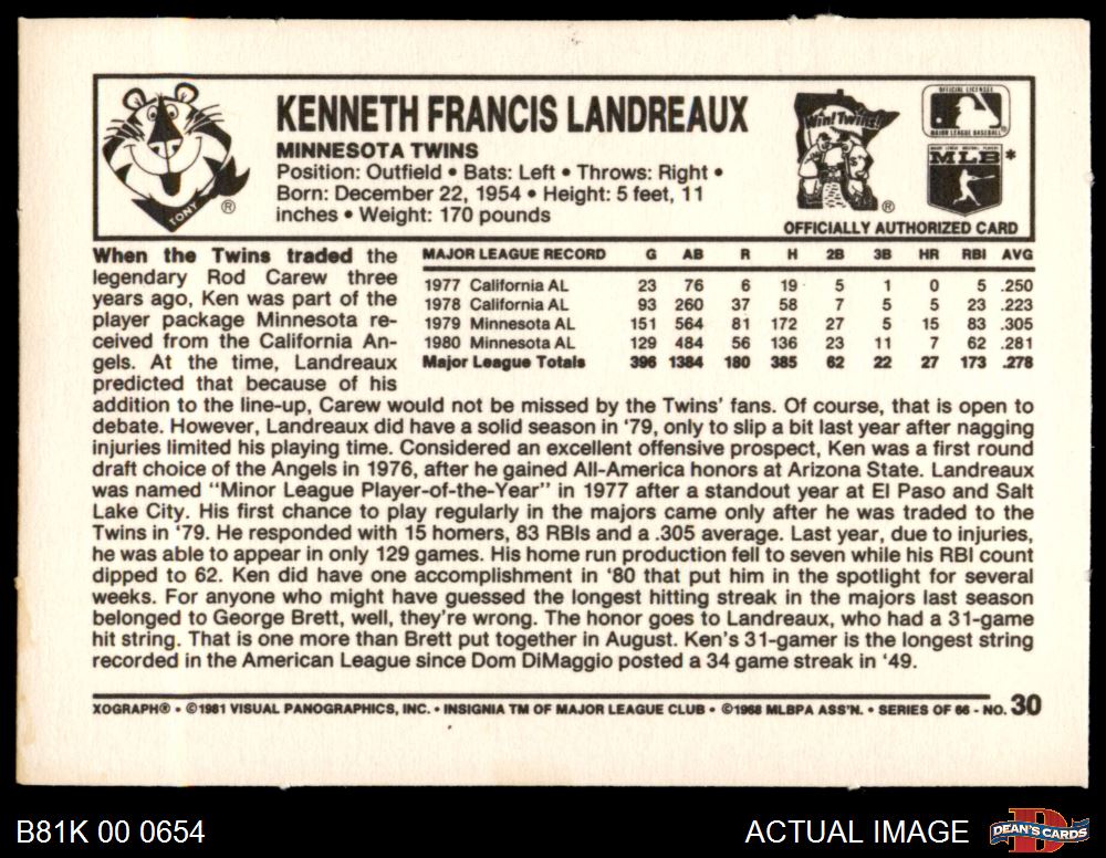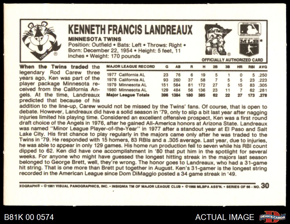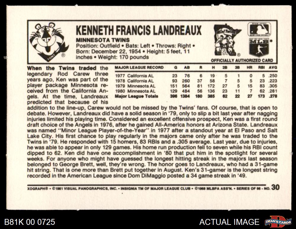 1981 Kelloggs #30 Ken Landreaux