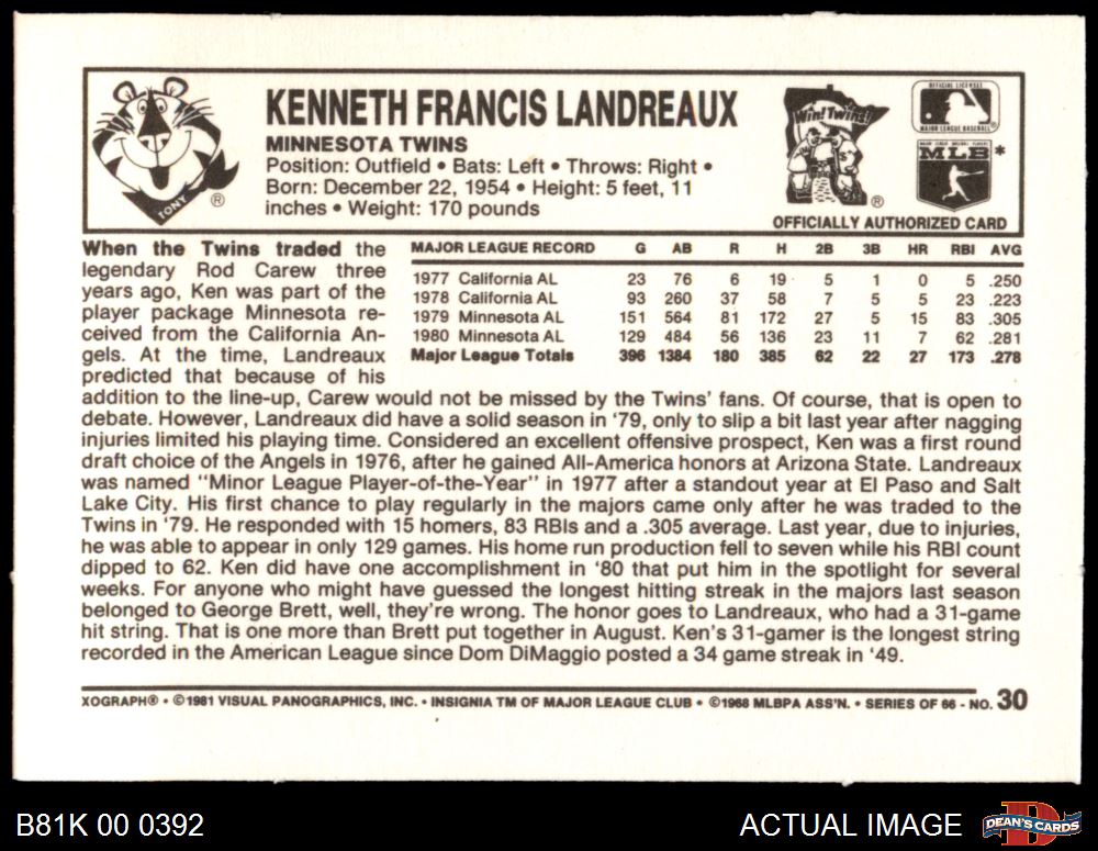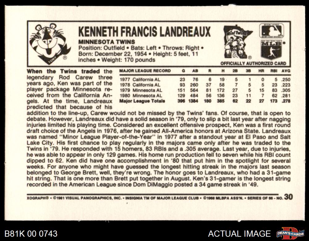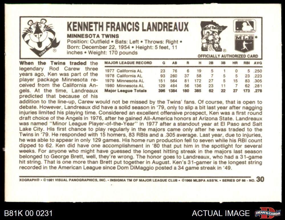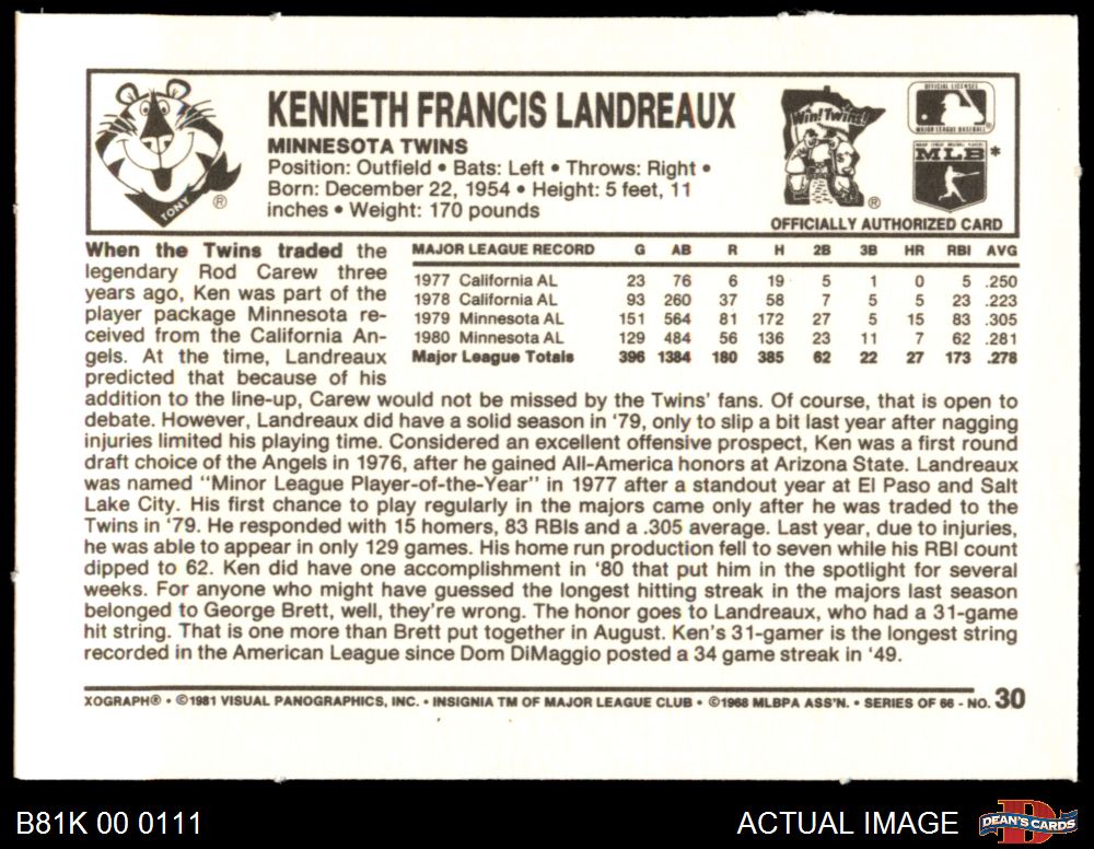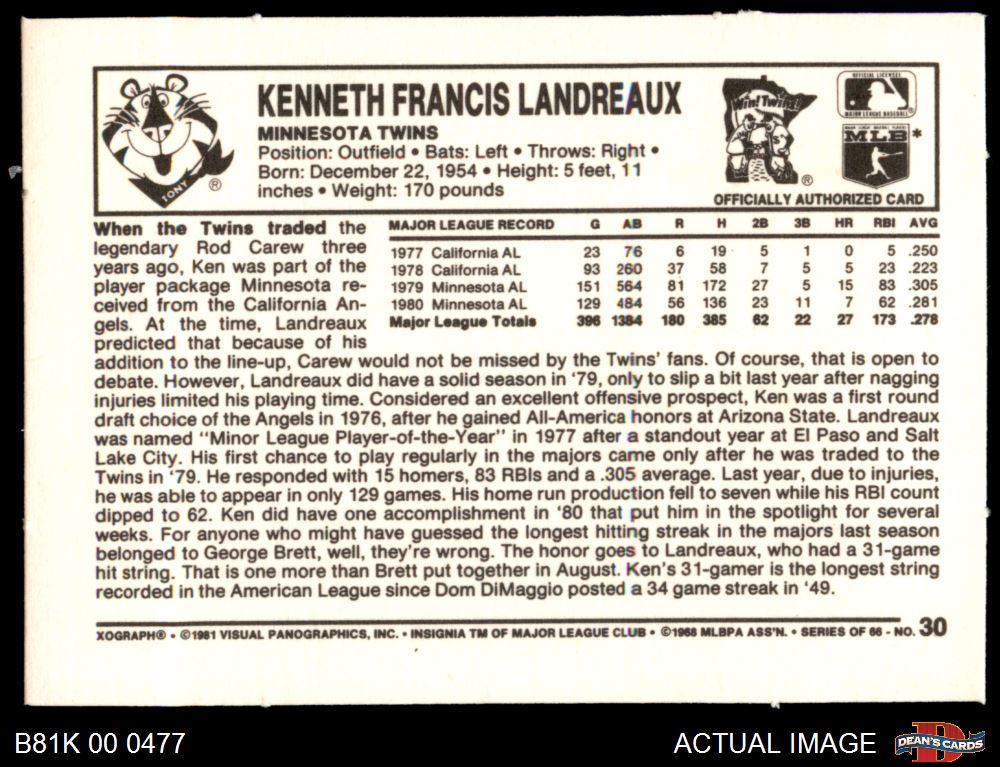 1981 Kelloggs #30 Ken Landreaux