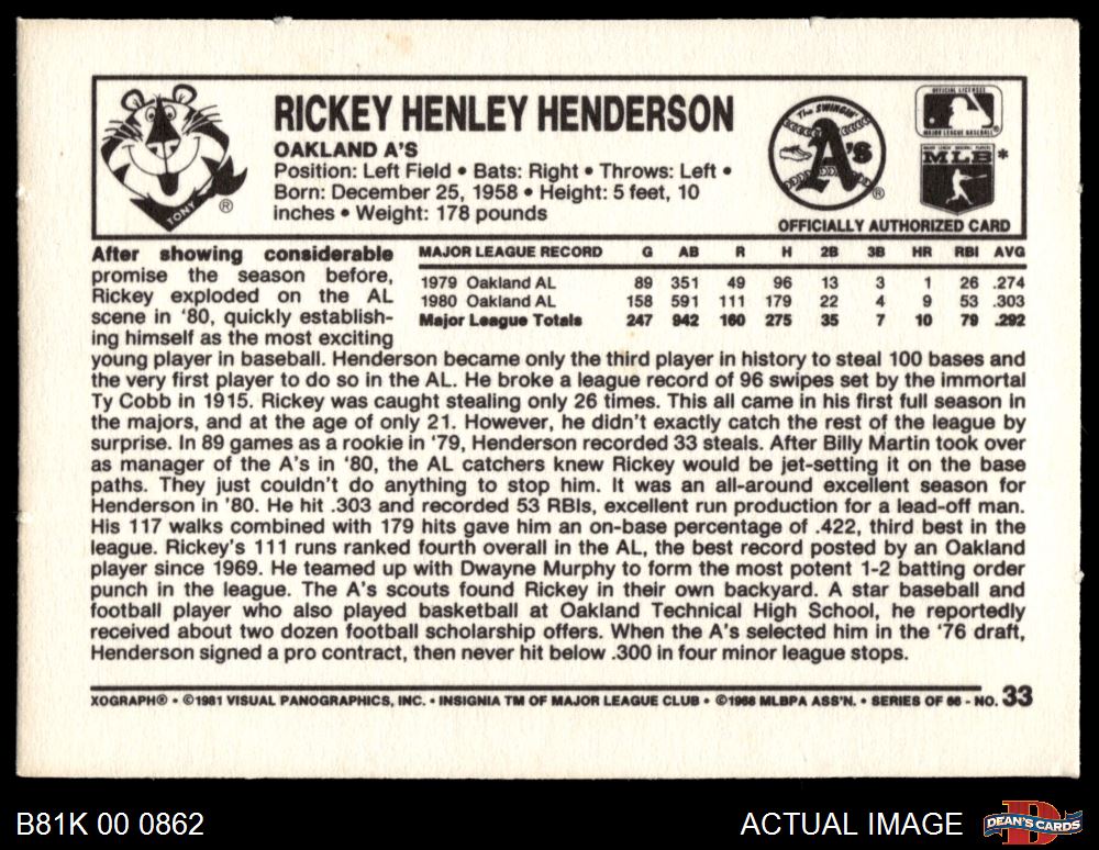 1981 Kelloggs #33 Rickey Henderson 6 - EX/MT