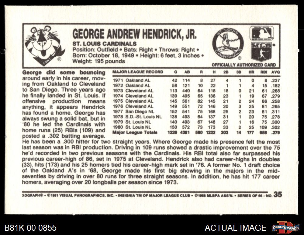 1981 Kelloggs #35 George Hendrick