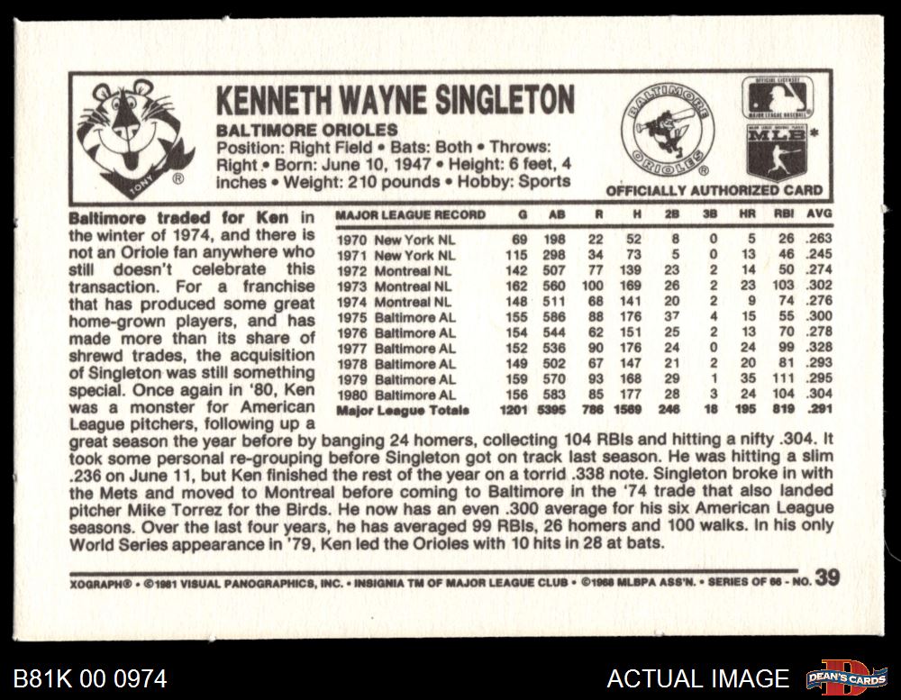 1981 Kelloggs #39 Ken Singleton 7.5 - NM+