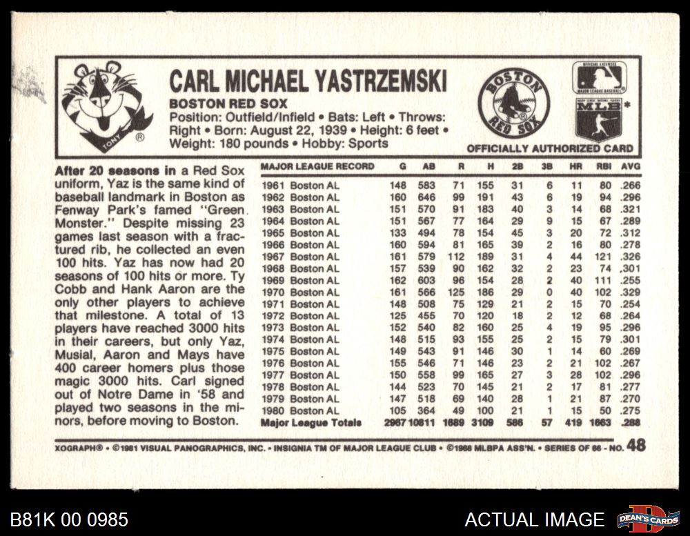 1981 Kelloggs #48 Carl Yastrzemski 2 - GOOD
