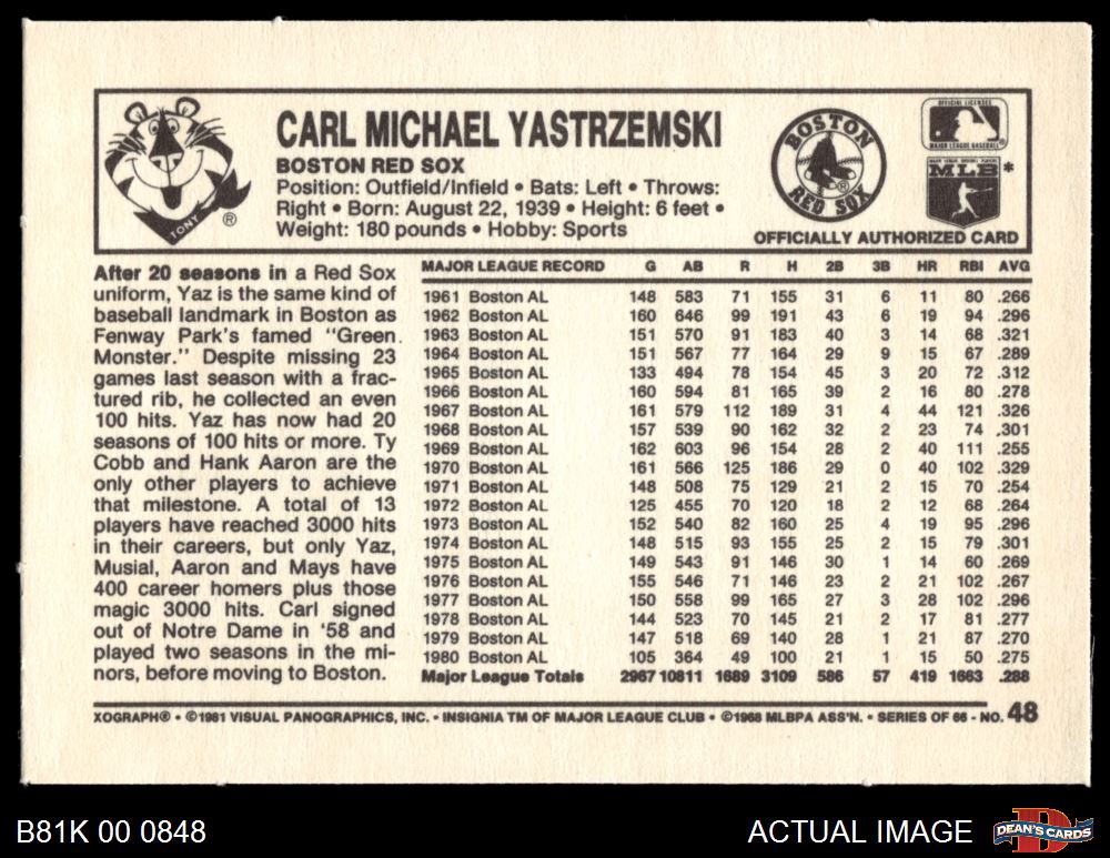 1981 Kelloggs #48 Carl Yastrzemski 8 - NM/MT