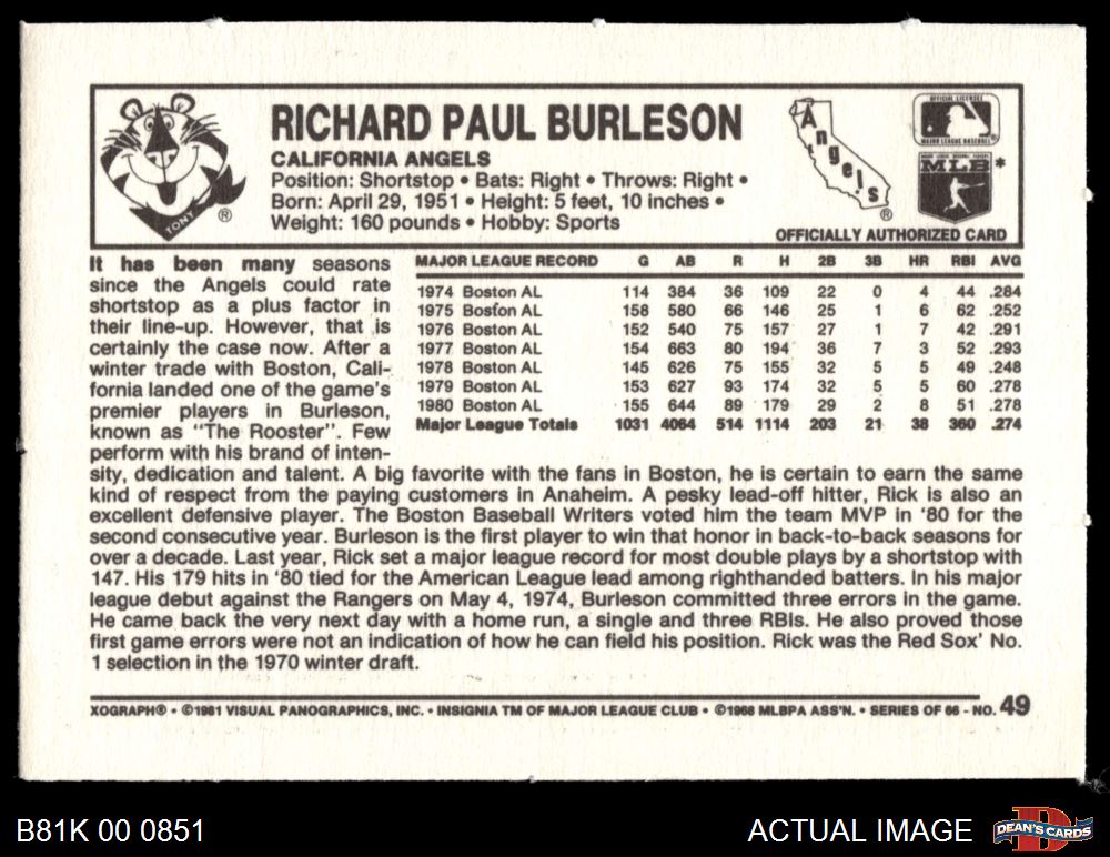 1981 Kelloggs #49 Rick Burleson