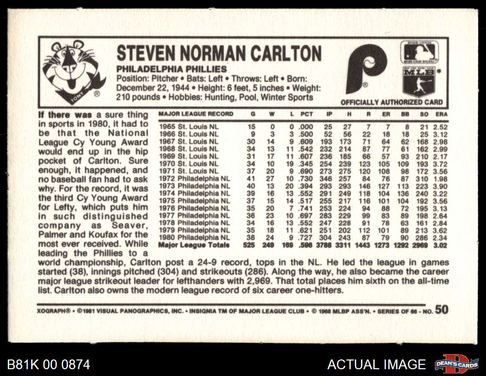 1981 Kelloggs #50 Steve Carlton 5.5 - EX+