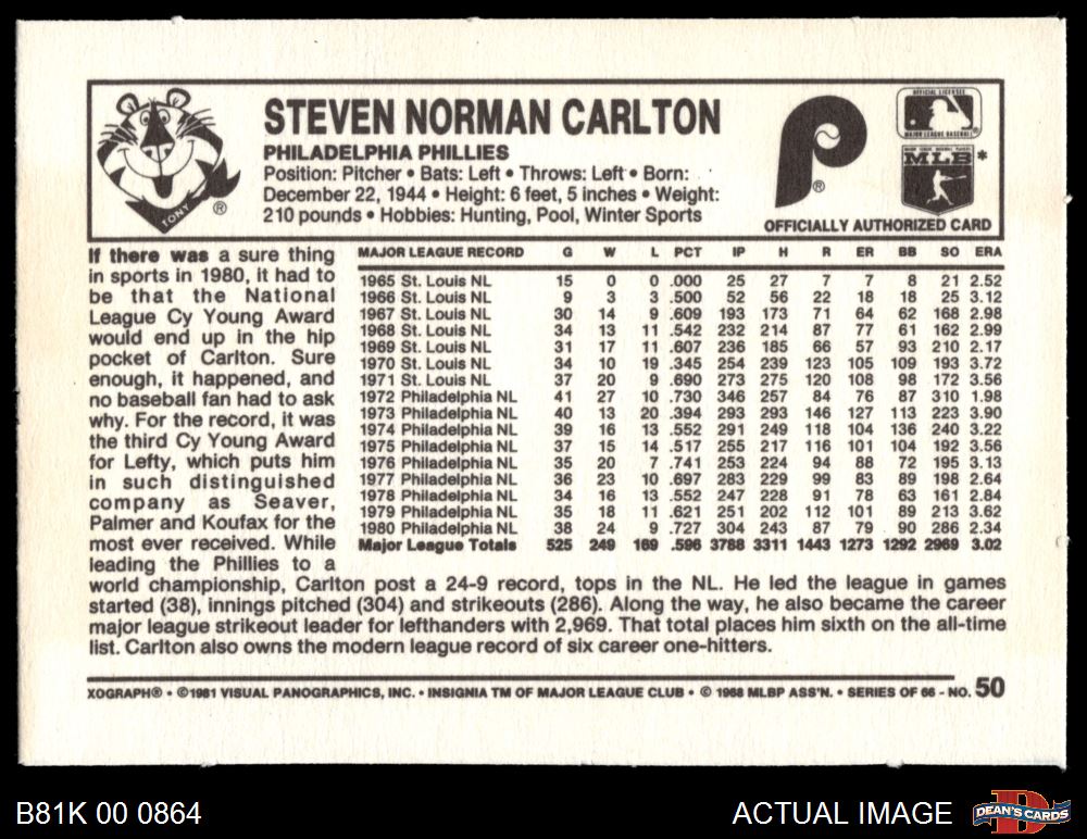 1981 Kelloggs #50 Steve Carlton 7 - NM