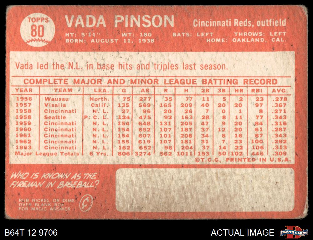 1964 Topps #80 Vada Pinson