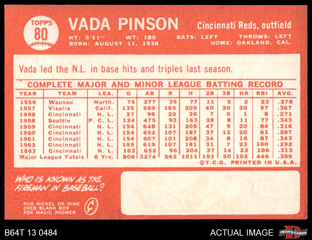 1964 Topps #80 Vada Pinson 7 - NM