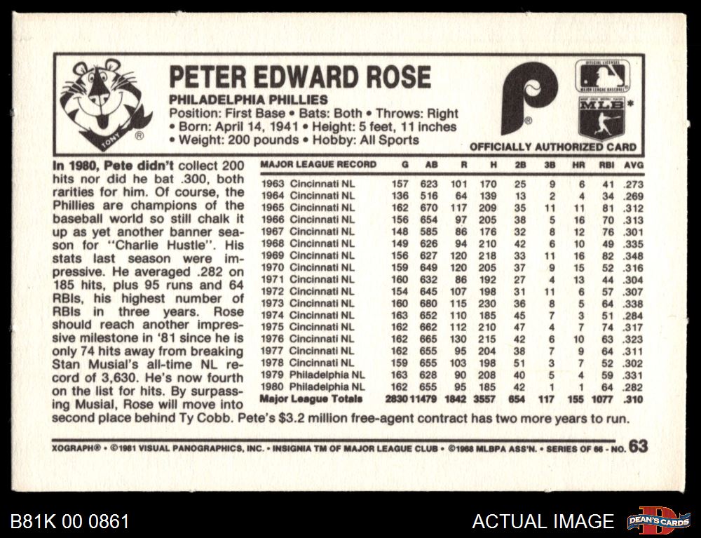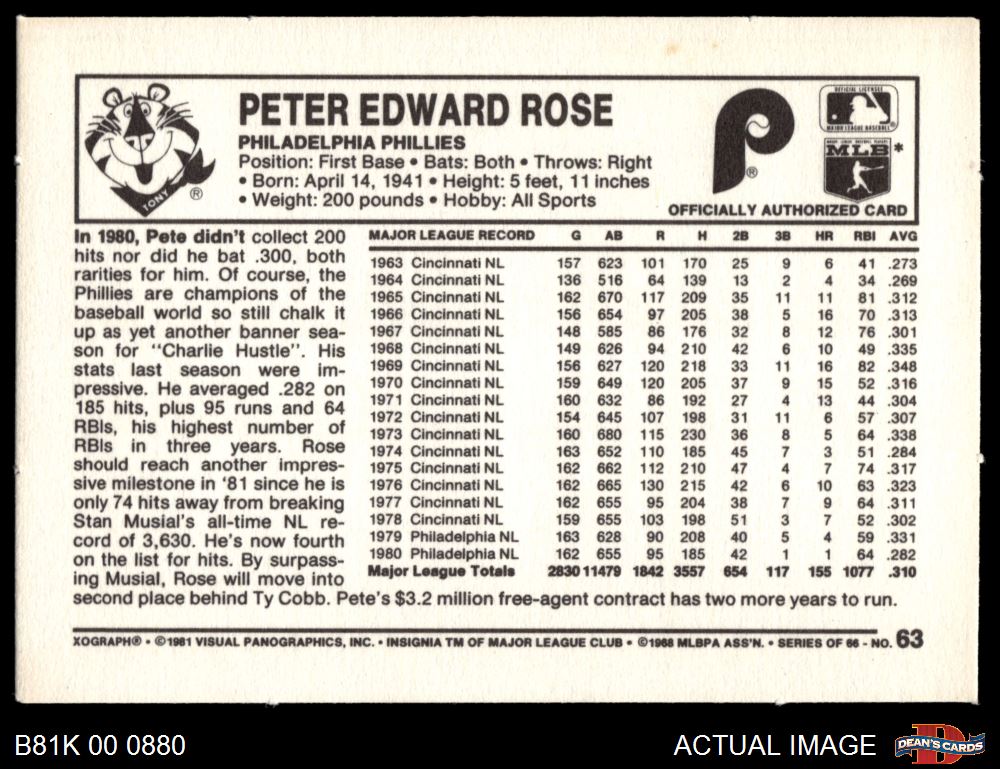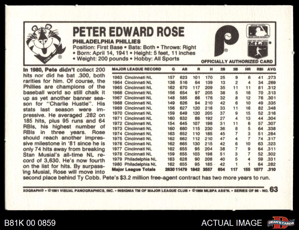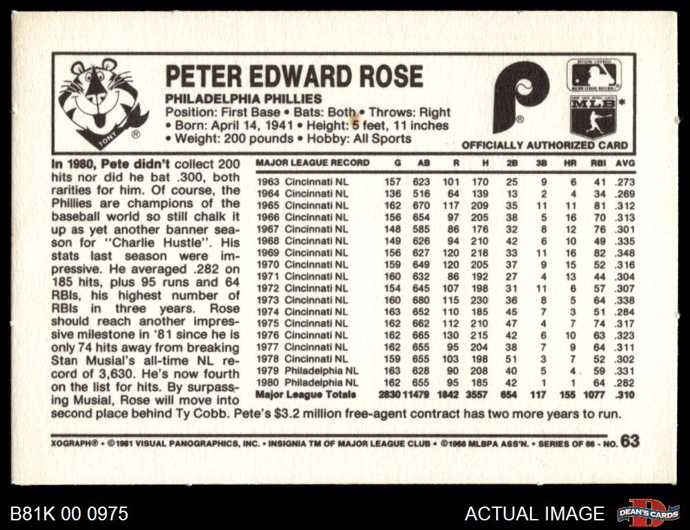 1981 Kelloggs #63 Pete Rose