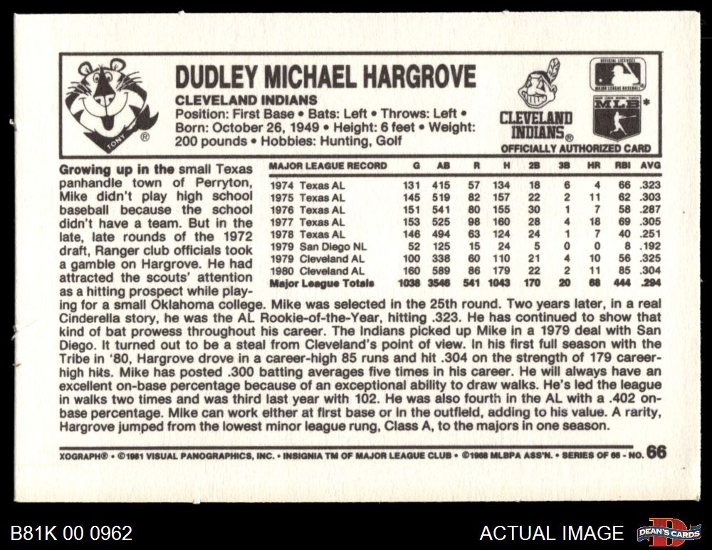 1981 Kelloggs #66 Mike Hargrove 4 - VG/EX
