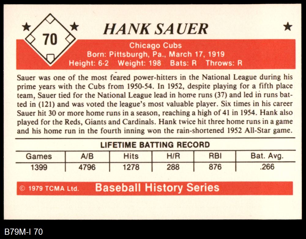 1979 TCMA The 1950's #70 Hank Sauer