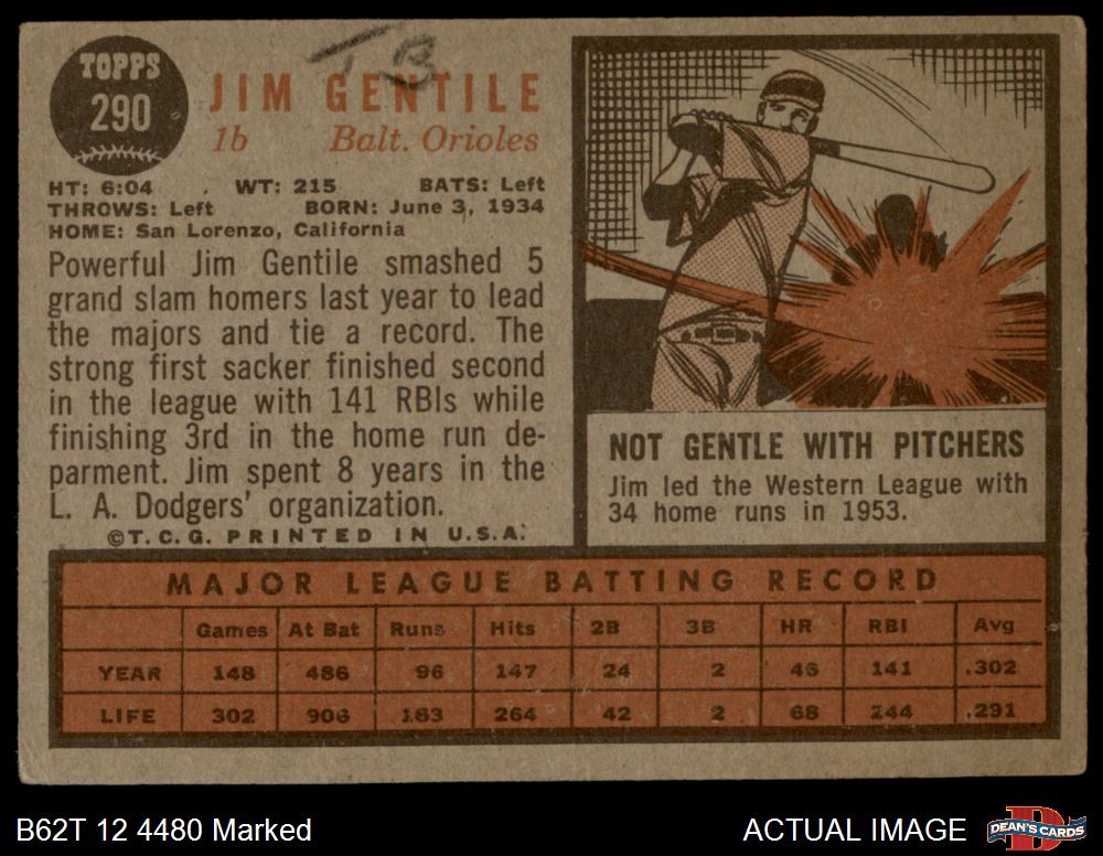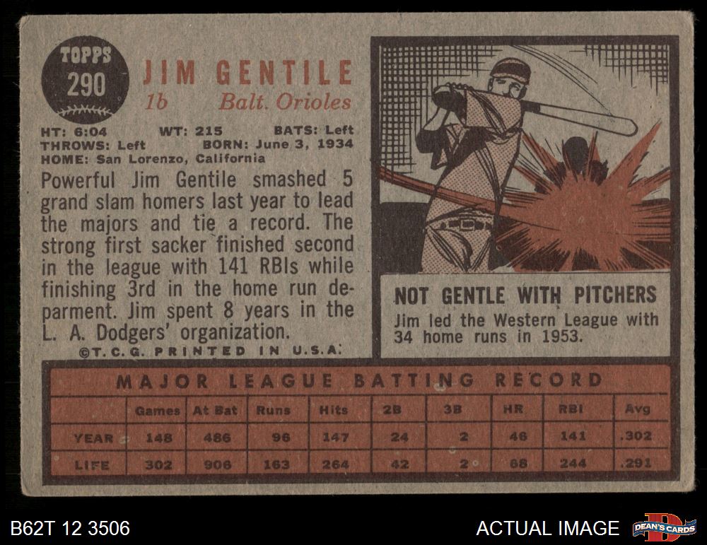 1962 Topps #290 Jim Gentile Front Thumbnail