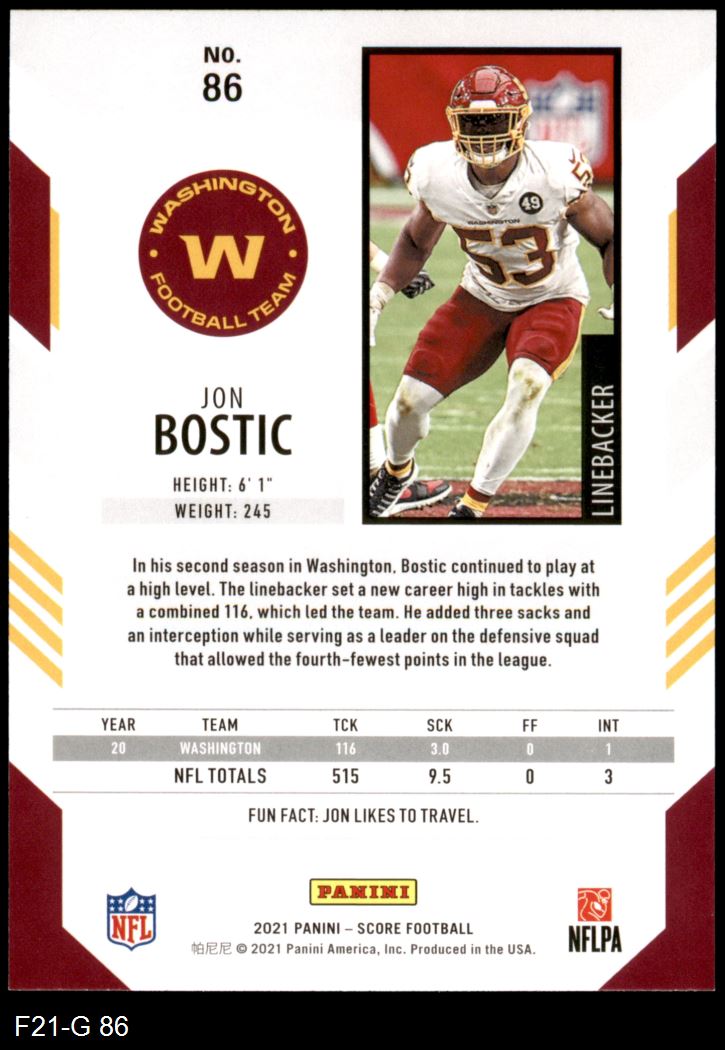 2021 Score #86 Jon Bostic 8 - NM/MT