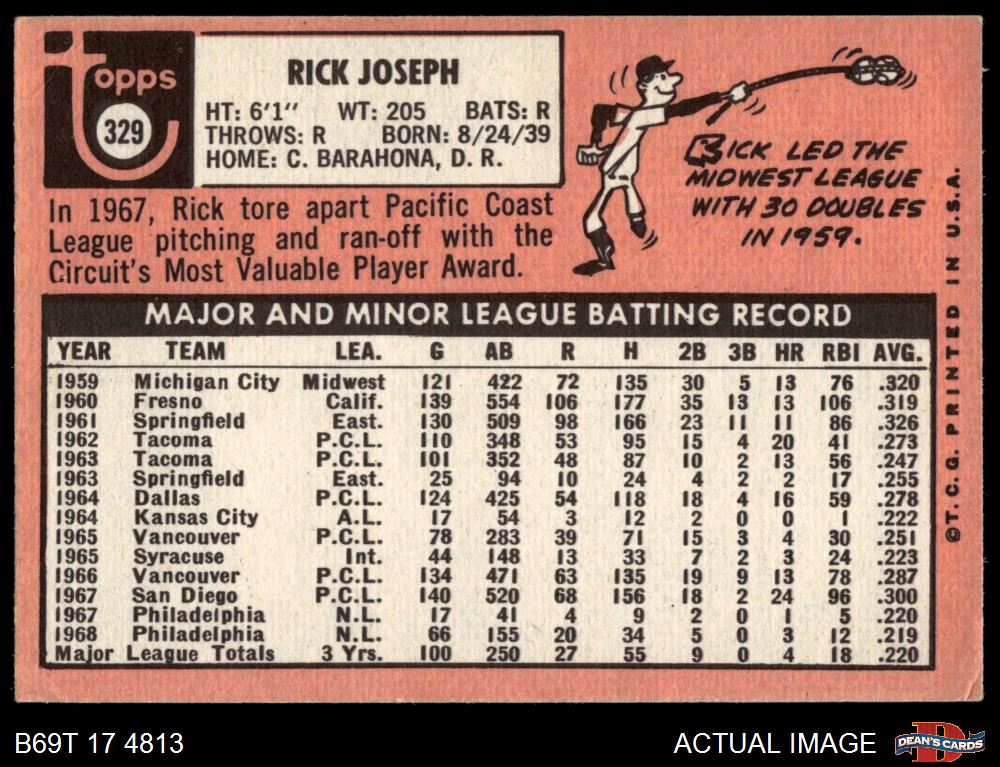 1969 Topps #329 Rick Joseph 4 - VG/EX
