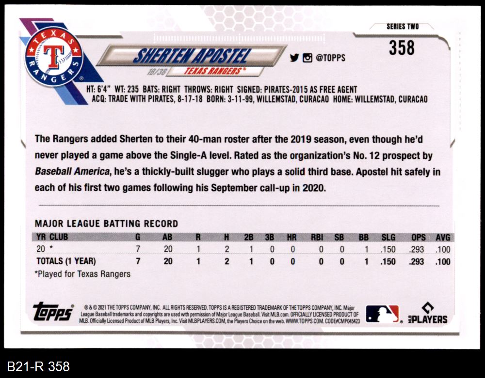 2021 Topps #358 Sherten Apostel 8 - NM/MT