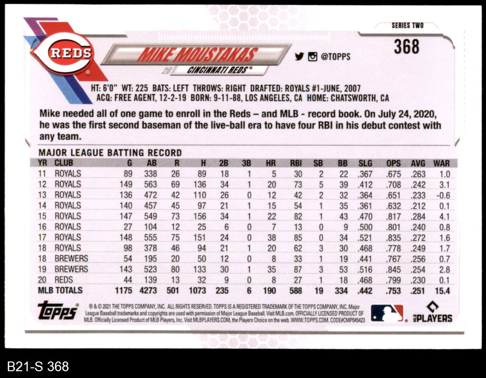 2021 Topps #368 Mike Moustakas 8 - NM/MT
