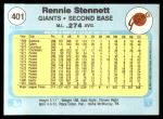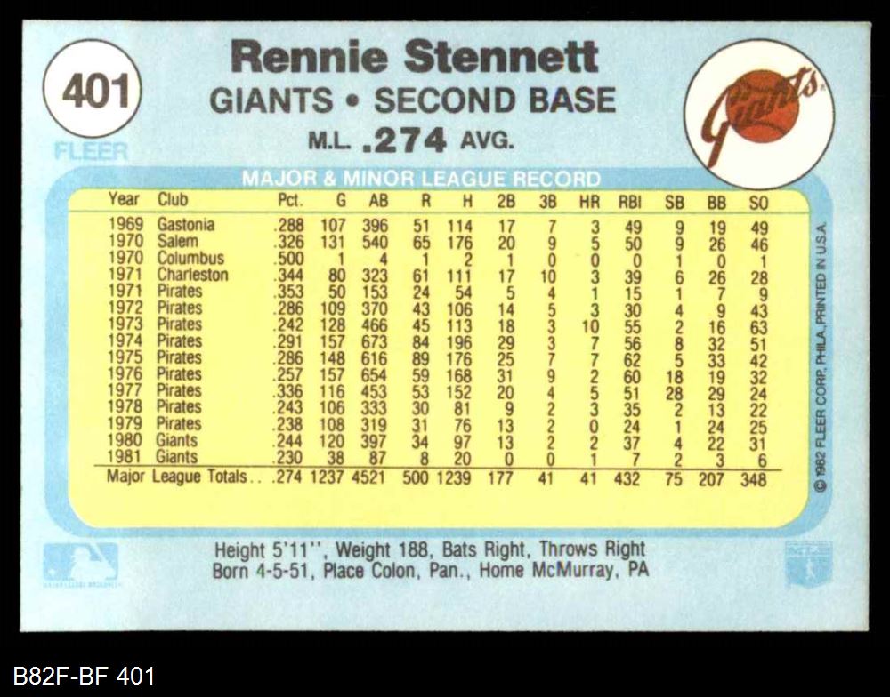 1982 Fleer #401 Rennie Stennett 8 - NM/MT