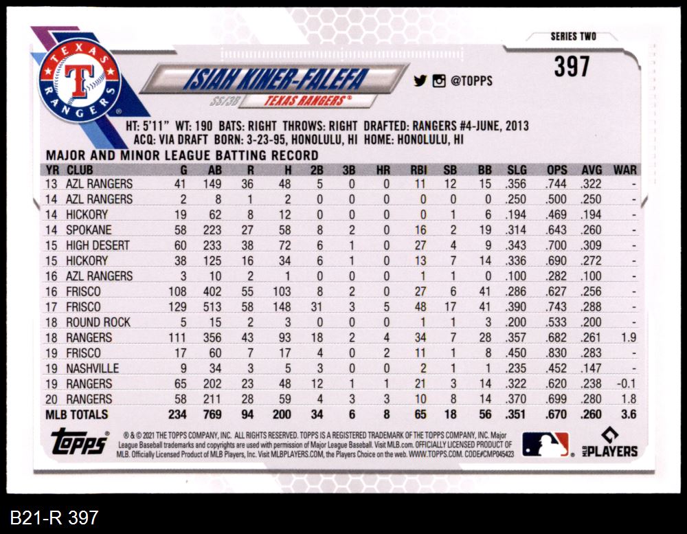 2021 Topps Baseball Cards (4,240 available)2021 Topps Rangers (257 available)