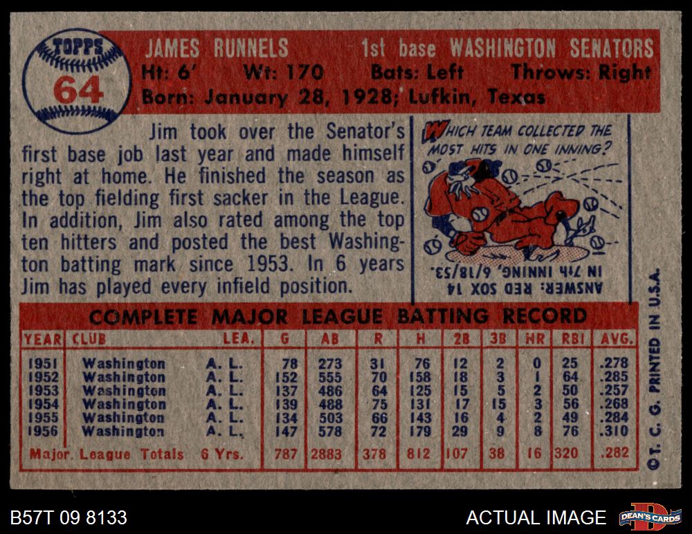 1957 Topps #64 Pete Runnels 7.5 - NM+