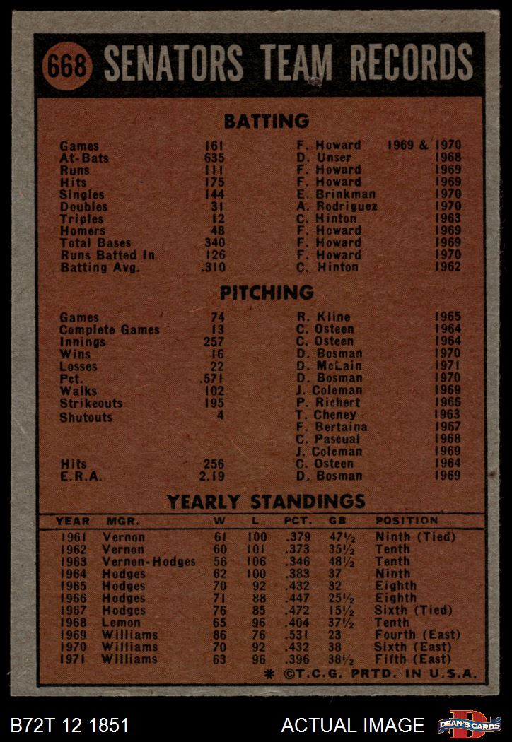 1972 Topps #668 Rangers Team