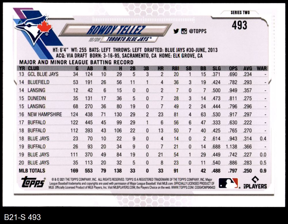 2021 Topps #493 Rowdy Tellez 8 - NM/MT
