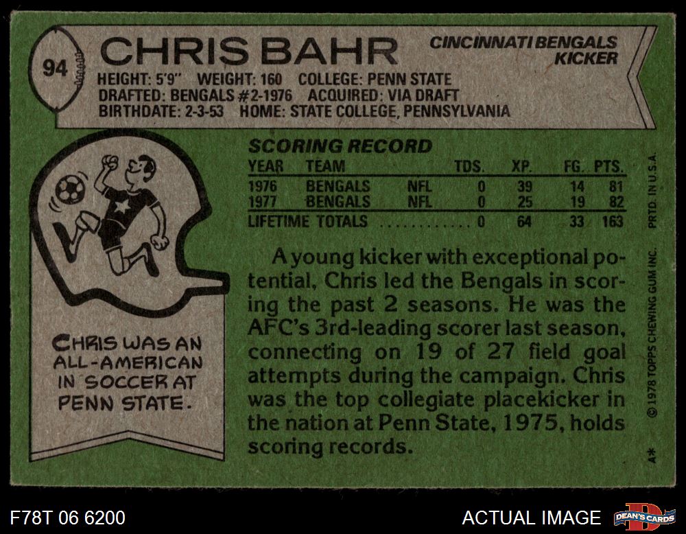 1978 Topps #94 Chris Bahr 3 - VG