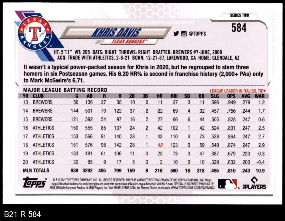 2021 Topps #584 Khris Davis 8 - NM/MT
