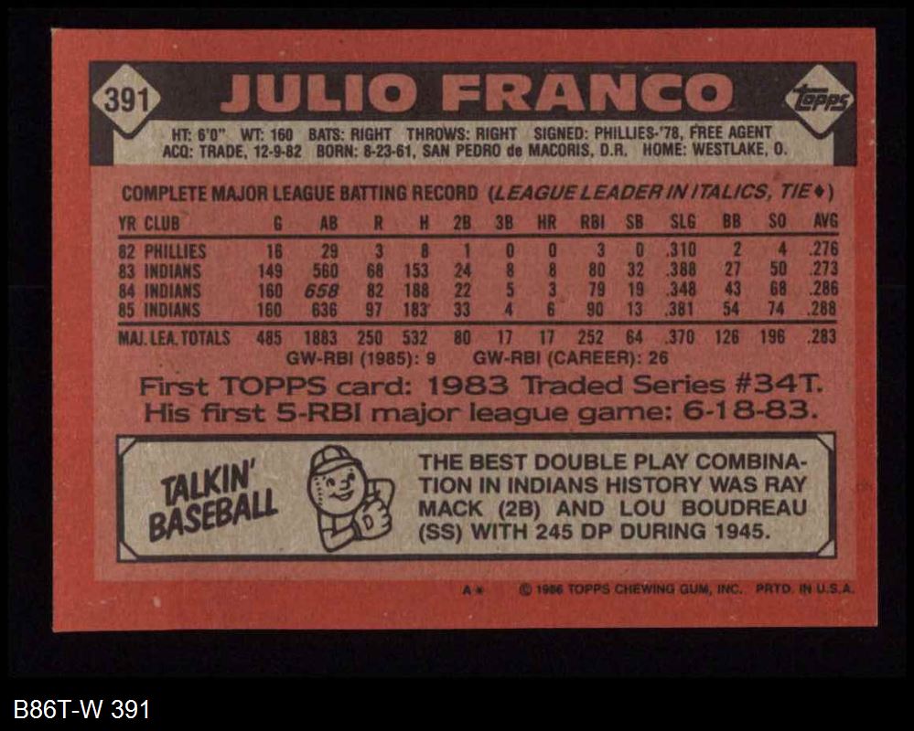 1986 Topps Baseball Cards (6,195 available)1986 Topps Indians (224 available)