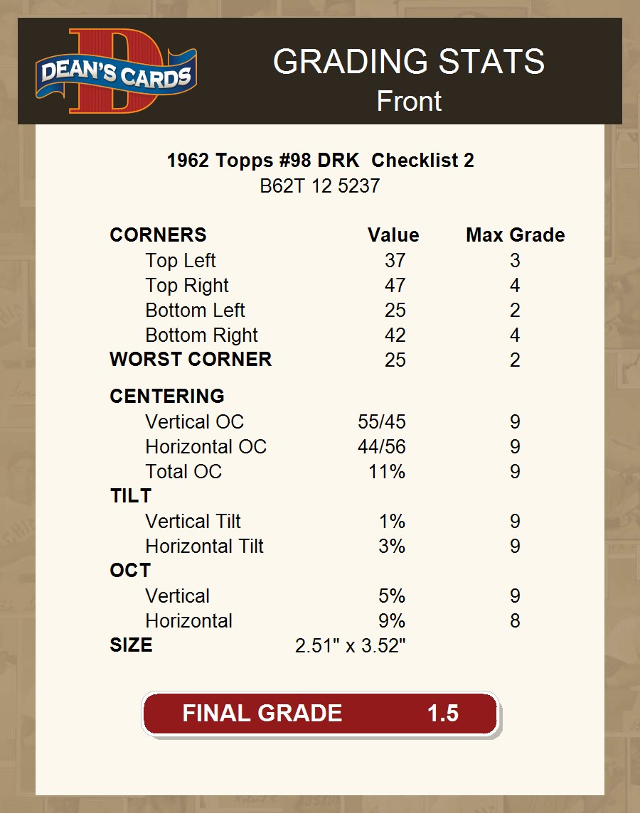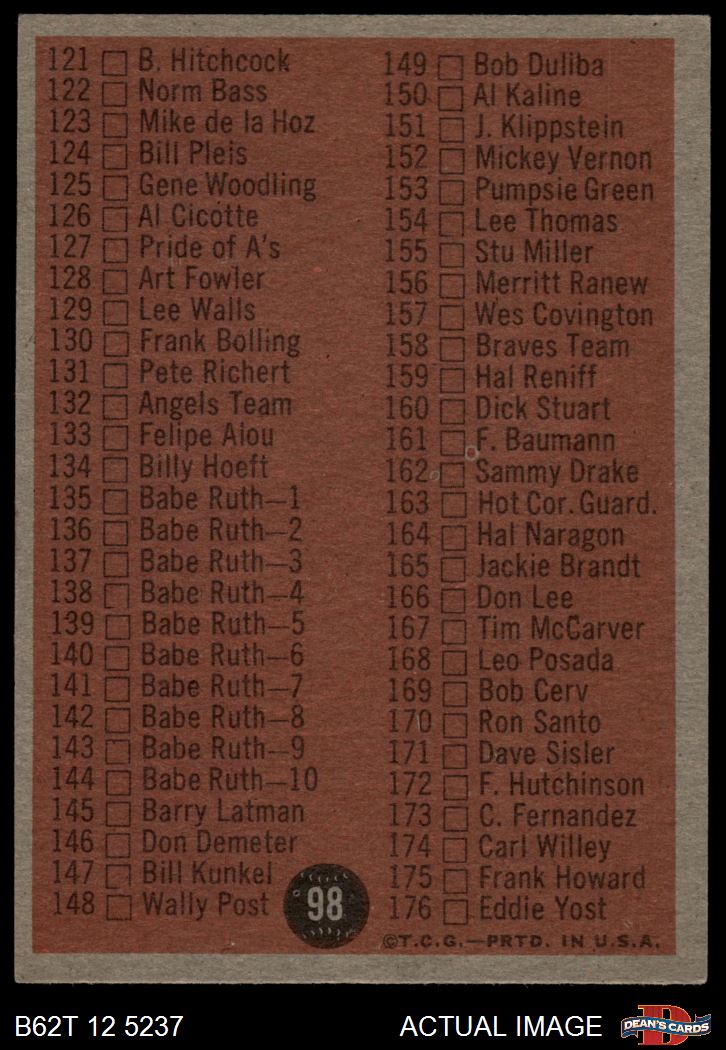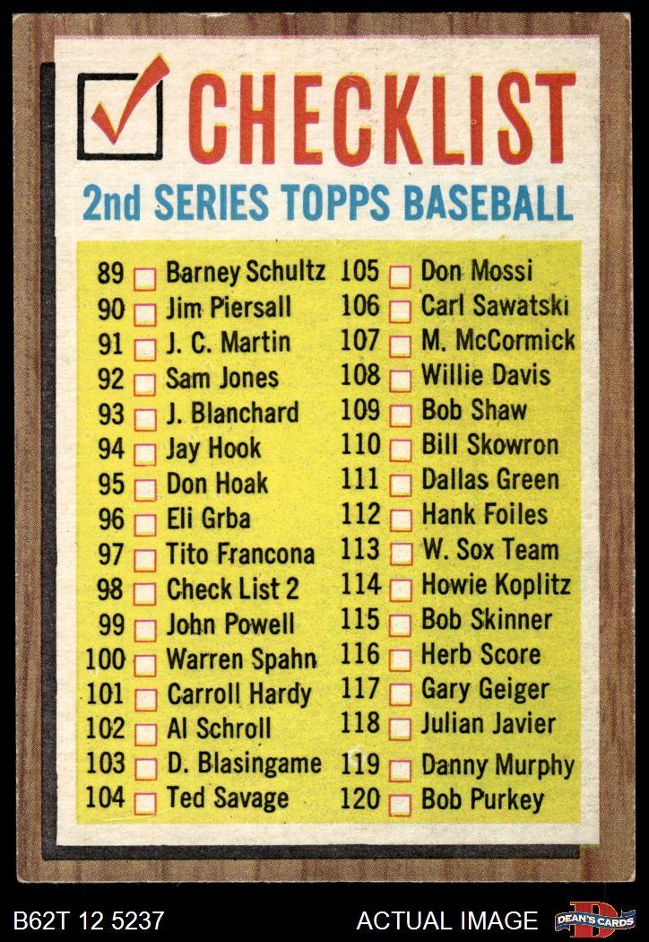 1962 Topps #98 DRK Checklist 2 1.5 - FAIR