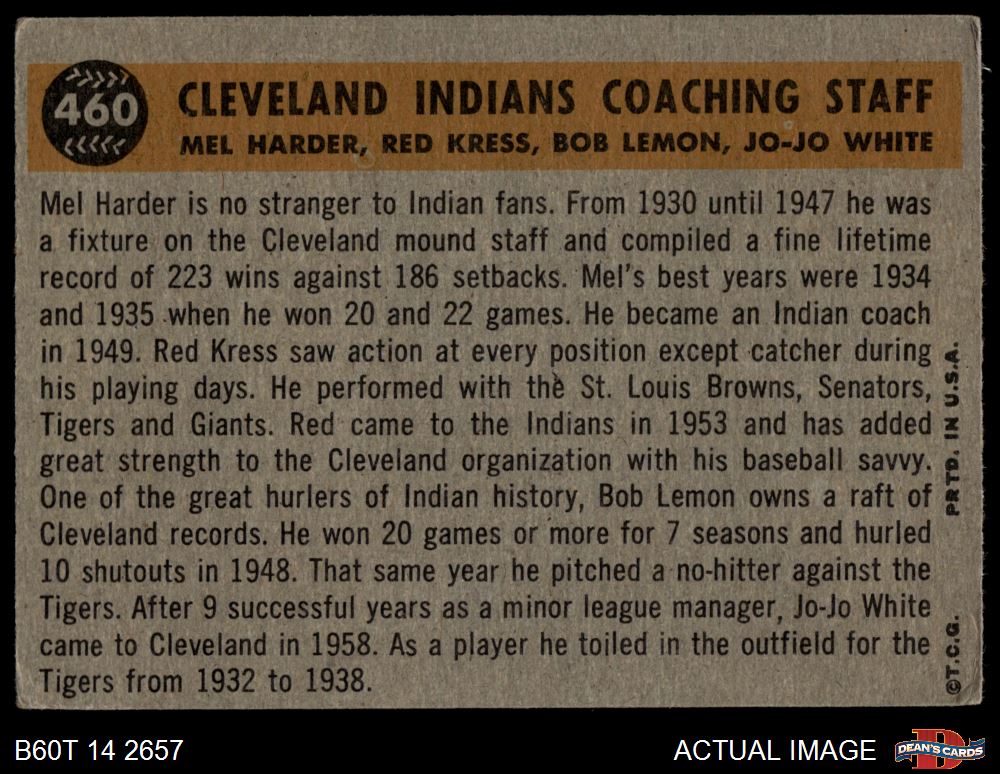 1960 Topps #460 - Mel Harder / Jo Jo White / Bob Lemon / Ralph Kress Indians Coaches 3 - VG
