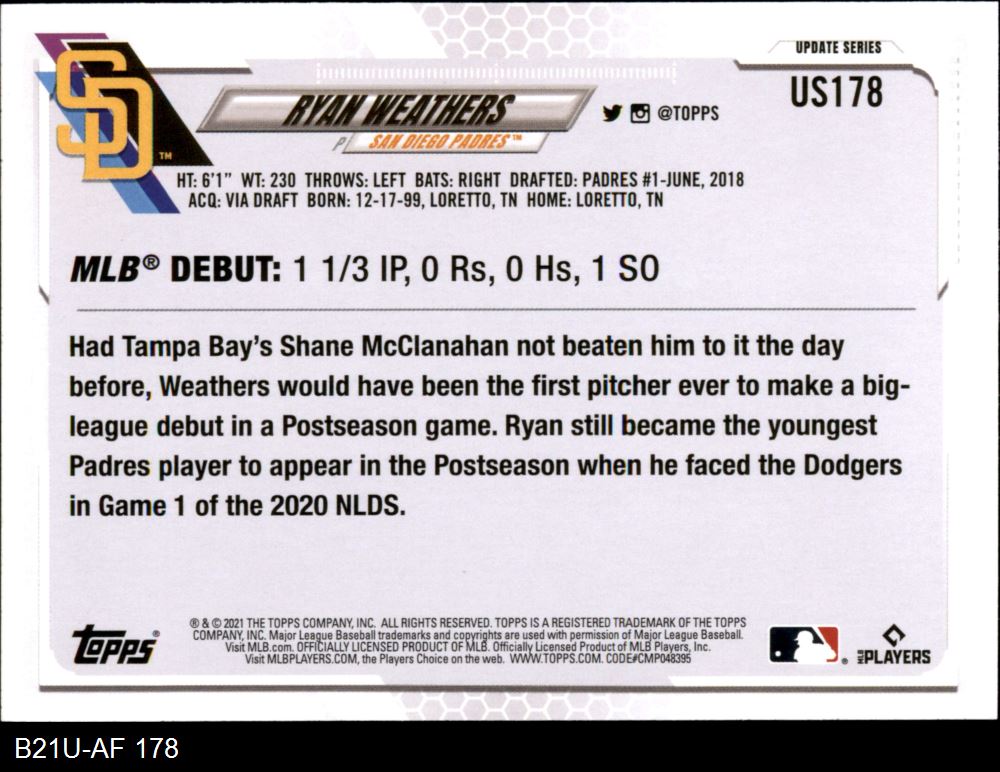 2021 Topps Update #178 - Ryan Weathers Rookie Debut 8 - NM/MT