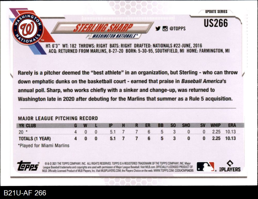 2021 Topps Update #266 Sterling Sharp 8 - NM/MT