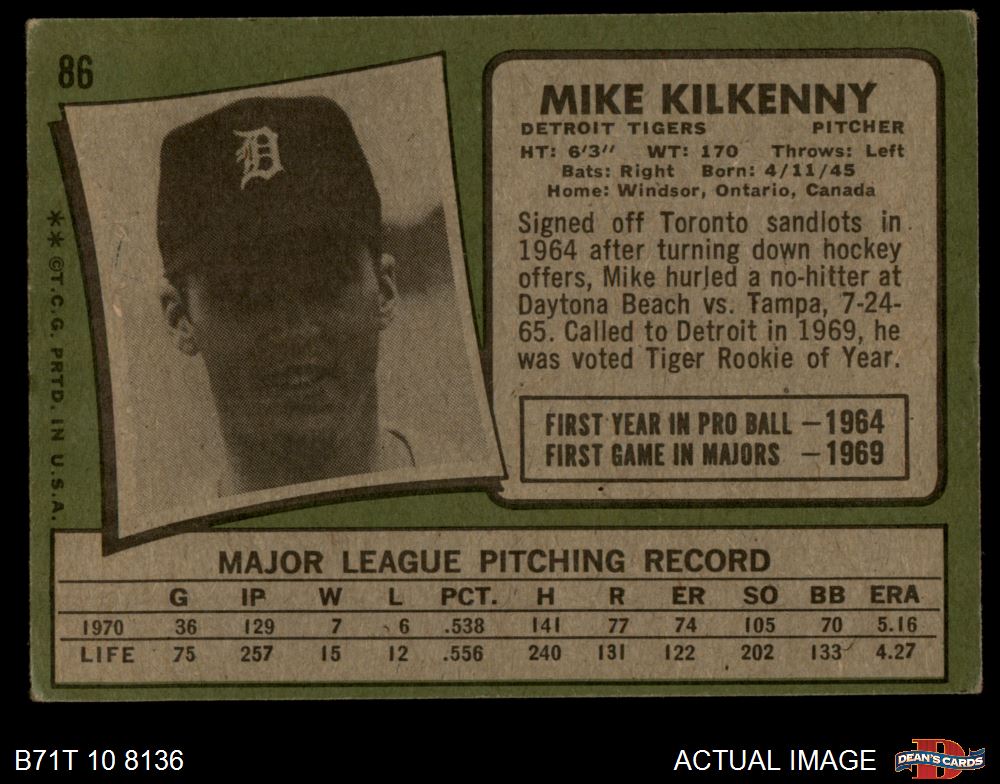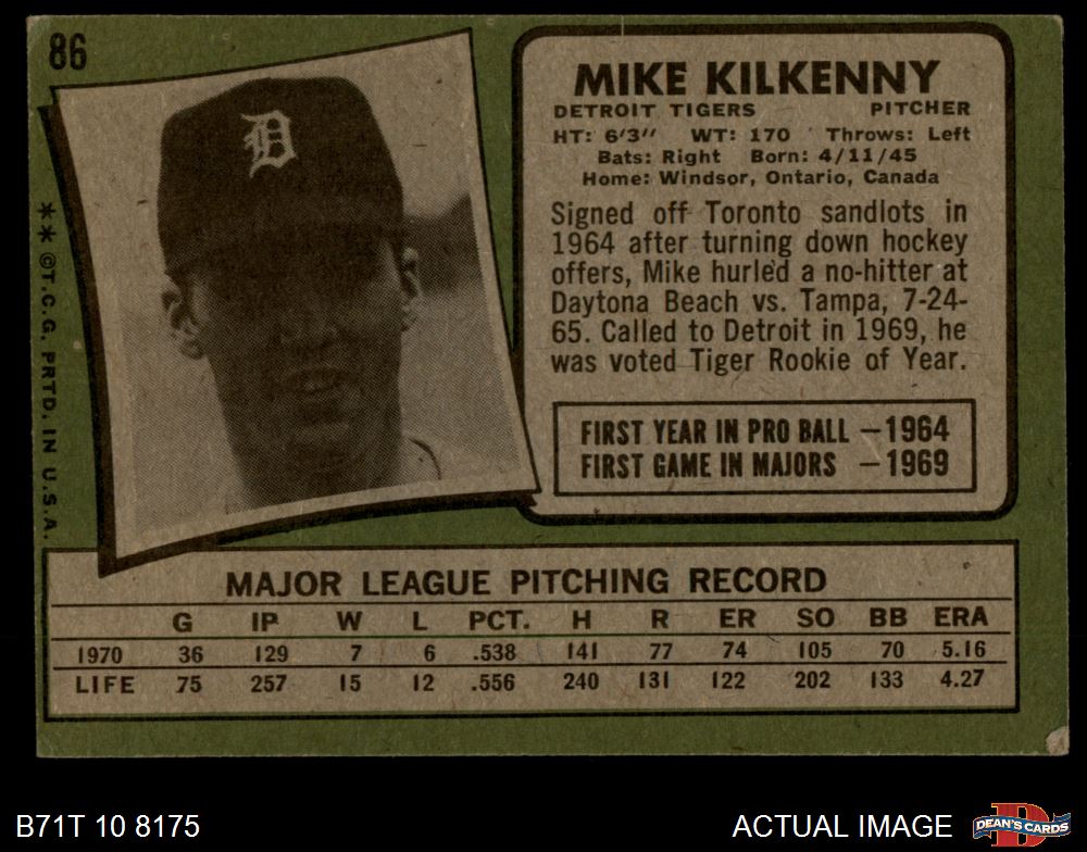 1971 Topps #86 Mike Kilkenny 3 - VG