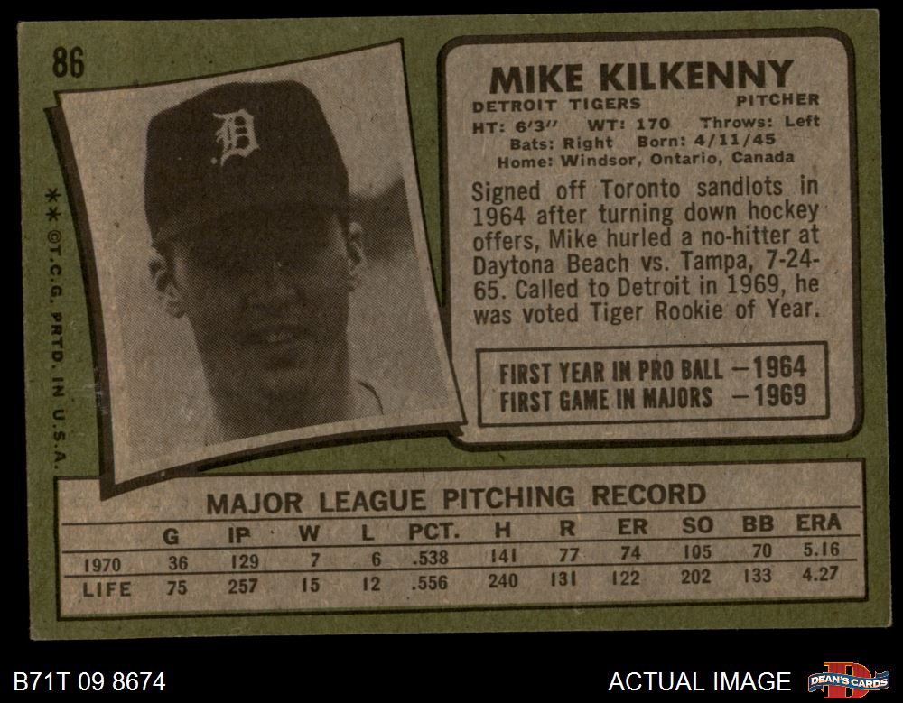 1971 Topps #86 Mike Kilkenny 5 - EX