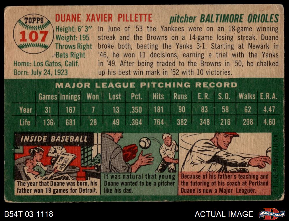 1954 Topps #107 Duane Pillette 2 - GOOD