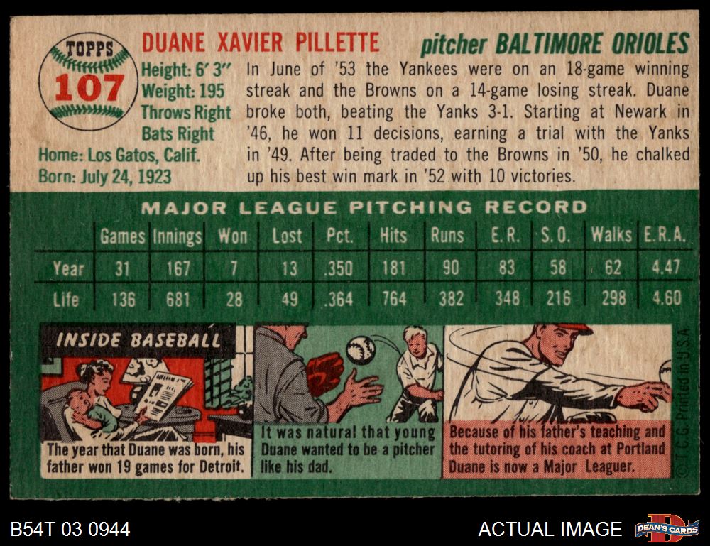 1954 Topps #107 Duane Pillette 4 - VG/EX
