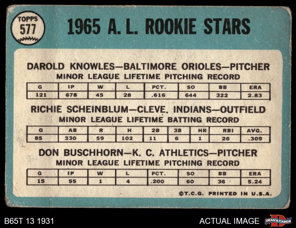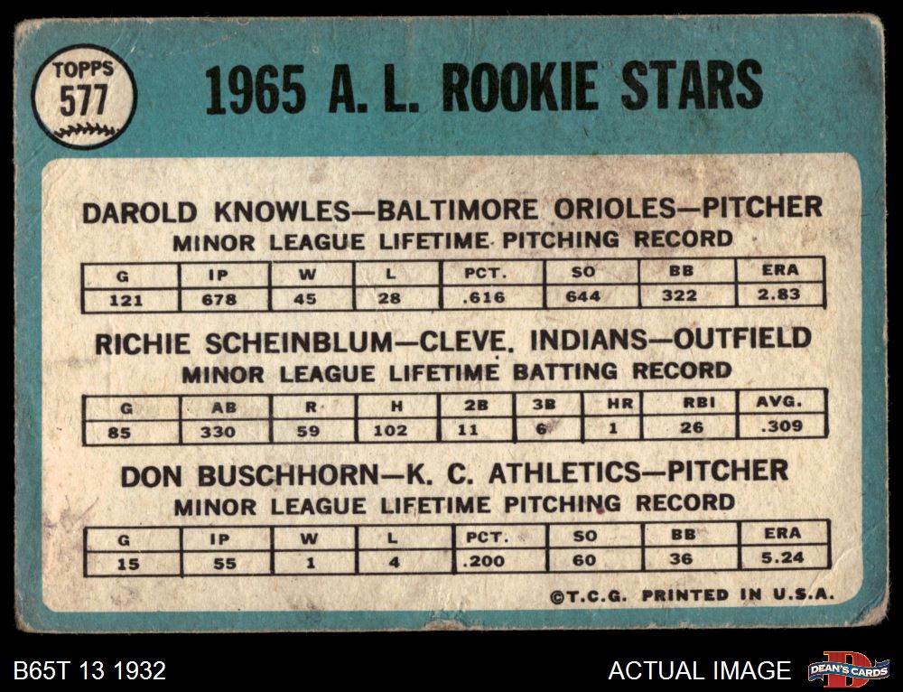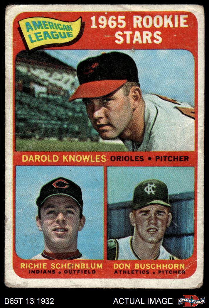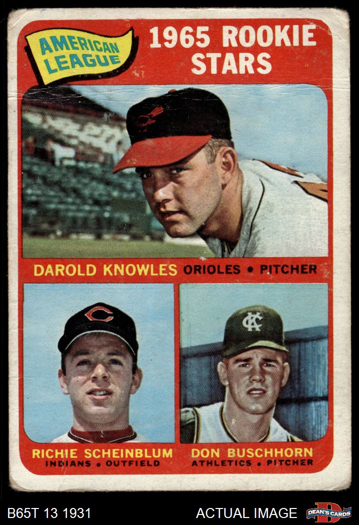 1965 Topps #577 - Darold Knowles / Richie Scheinblum / Don Buschhorn AL Rookies 1 - POOR