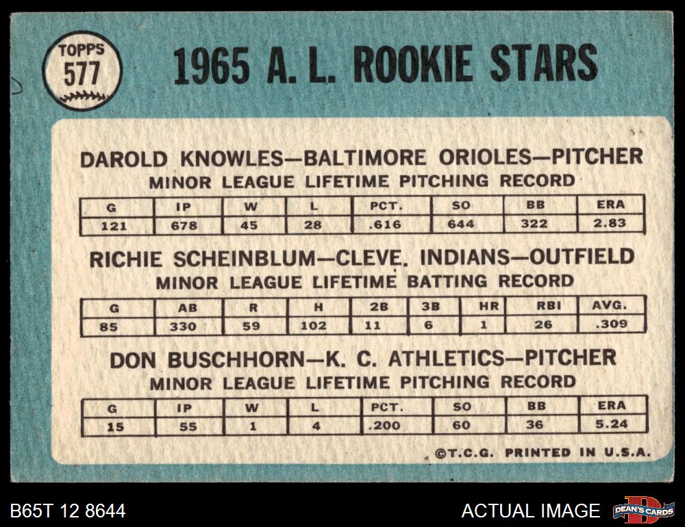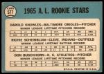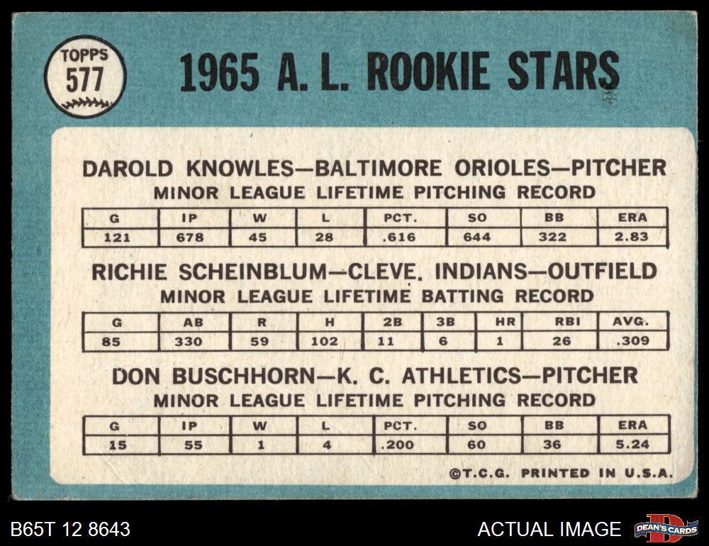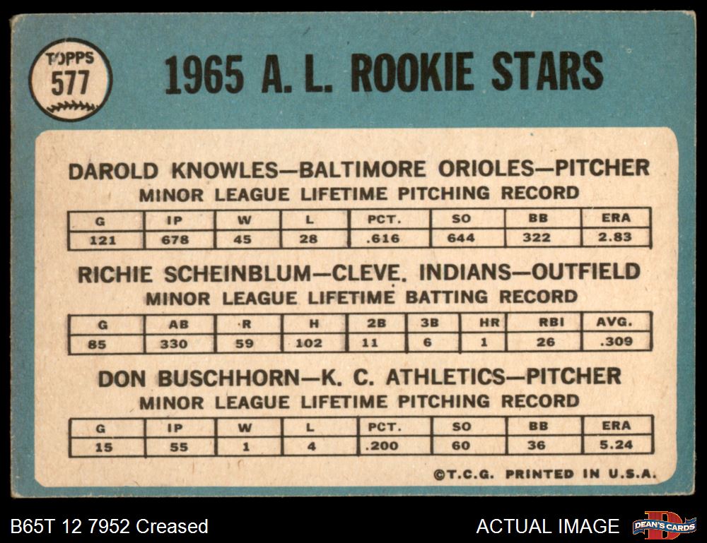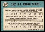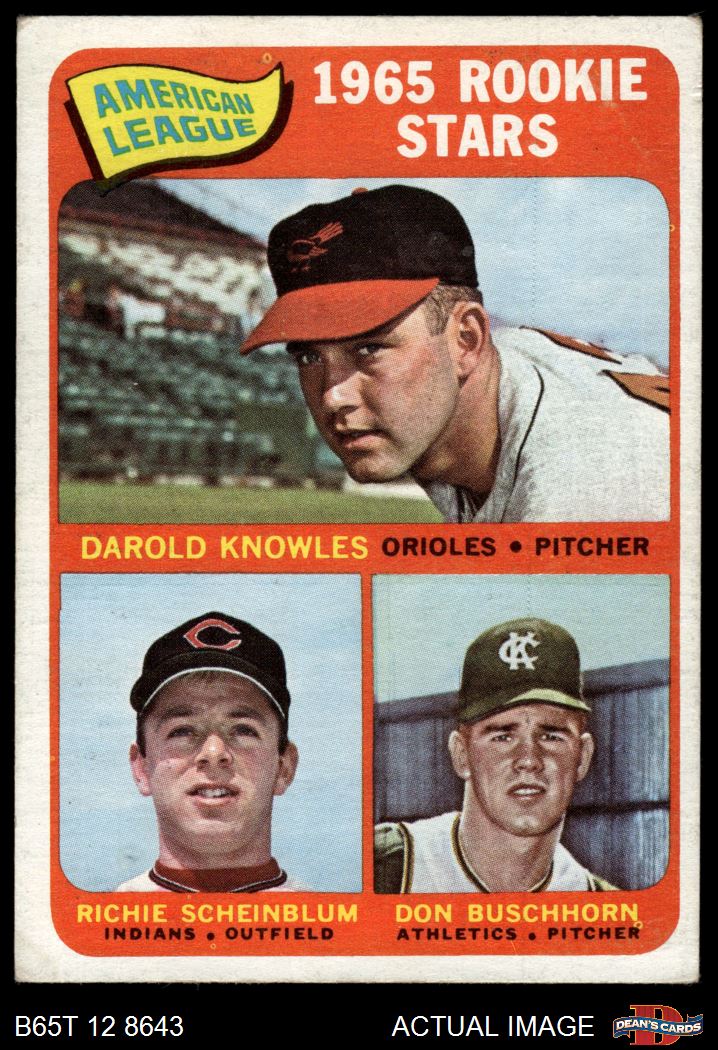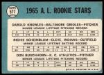 1965 Topps #577 - Darold Knowles / Richie Scheinblum / Don Buschhorn AL Rookies 2 - GOOD