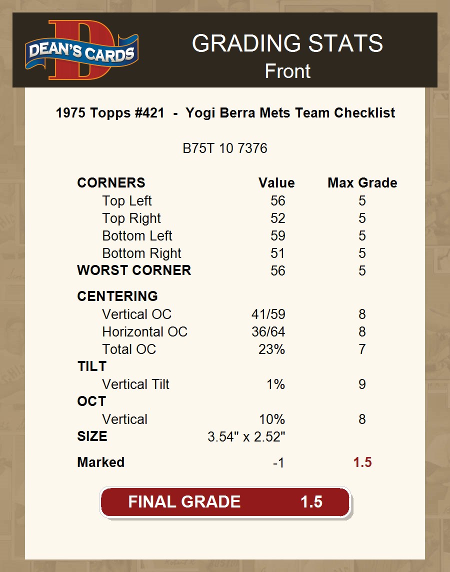 1975 1975 #421 - Yogi Berra Mets Team Checklist 1.5 - FAIR