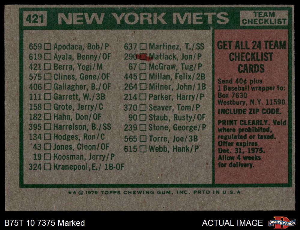 1975 1975 #421  -  Yogi Berra Mets Team Checklist Front Thumbnail