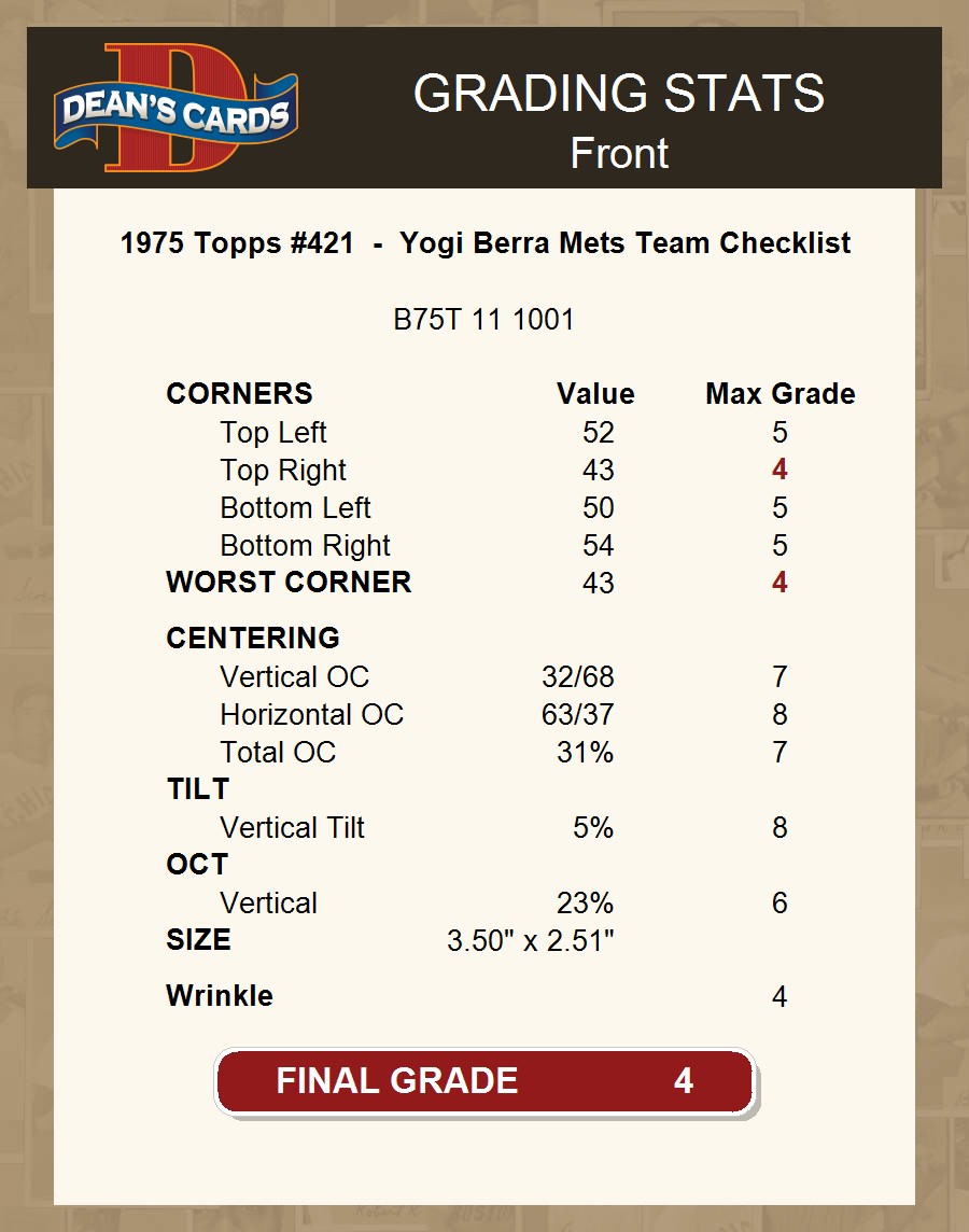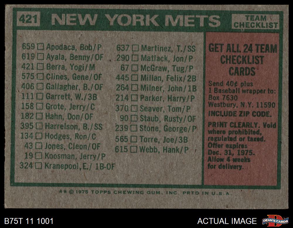1975 Topps #421 - Yogi Berra Mets Team Checklist 4 - VG/EX