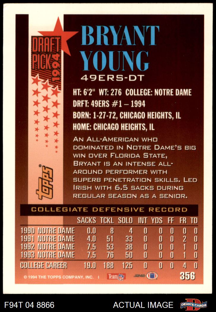 1994 Topps #356 Bryant Young 8 - NM/MT