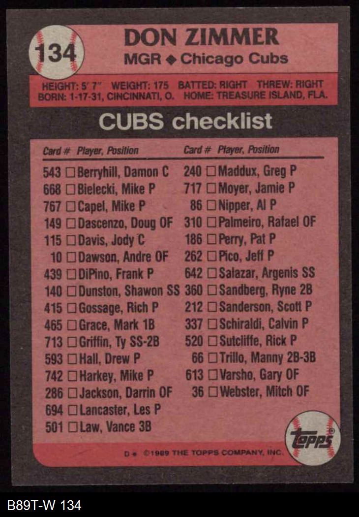 1989 Topps Cubs