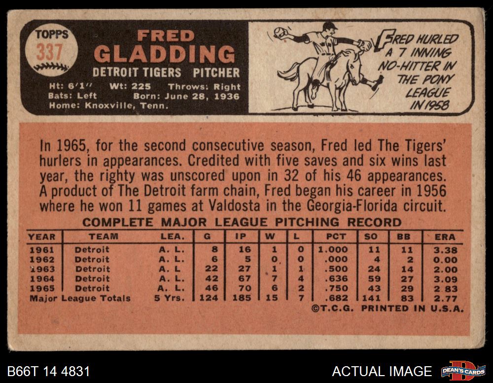 1966 Topps #337 Fred Gladding 1.5 - FAIR