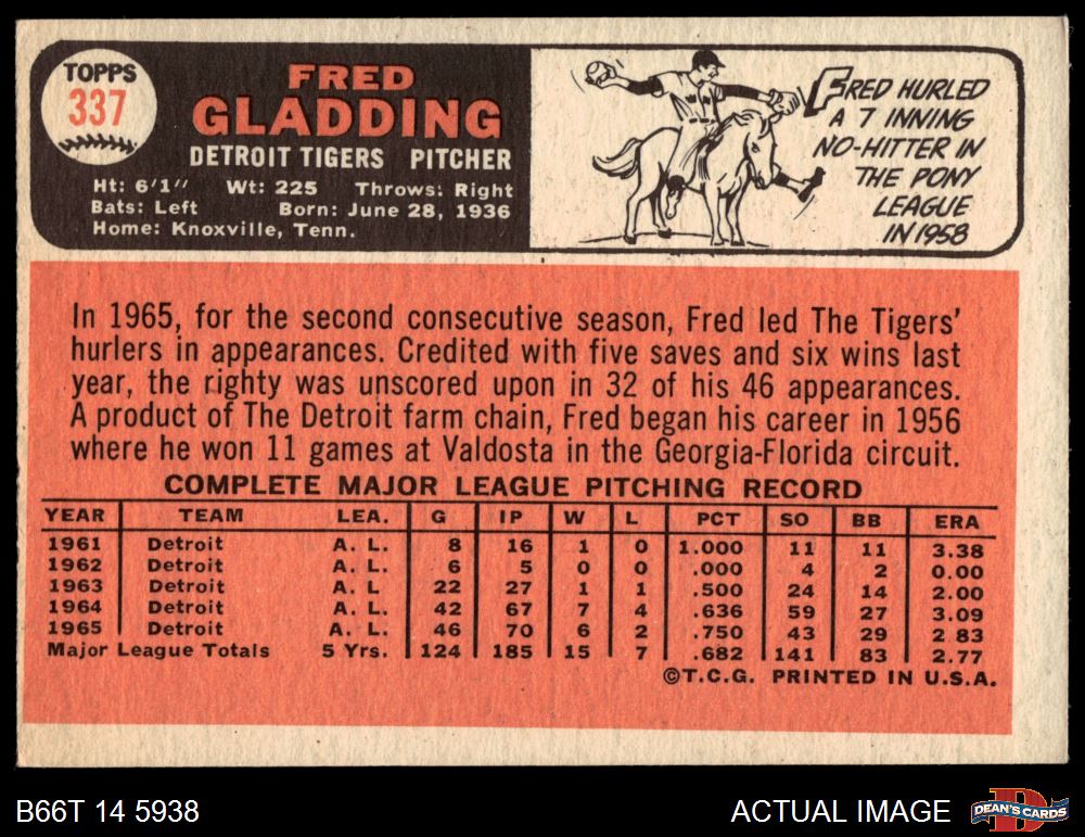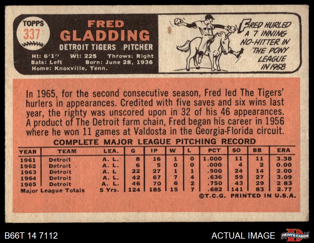 1966 Topps #337 Fred Gladding 4 - VG/EX