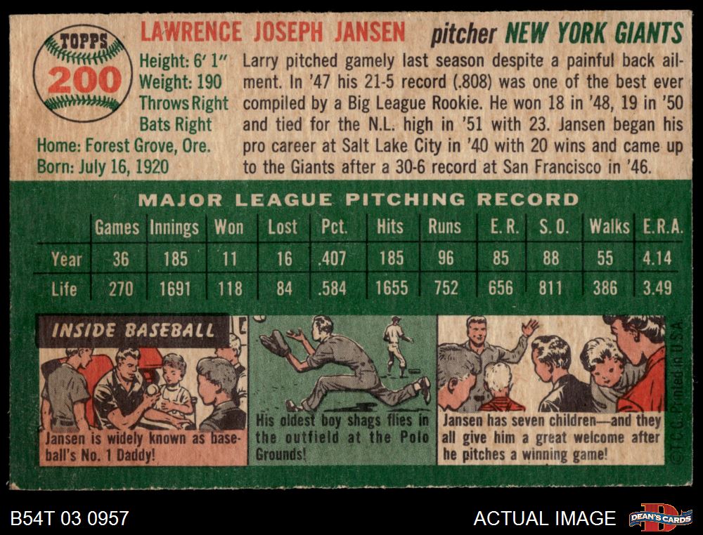 1954 Topps #200 Larry Jansen 4 - VG/EX