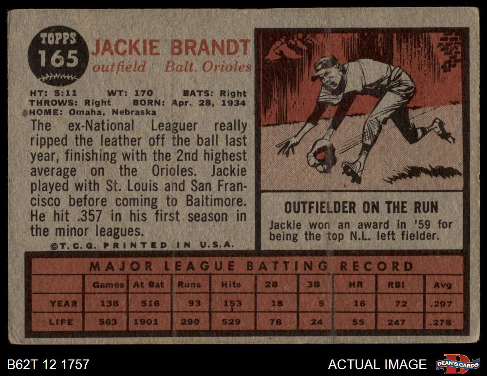 1962 Topps #165 NRM Jackie Brandt 1.5 - FAIR
