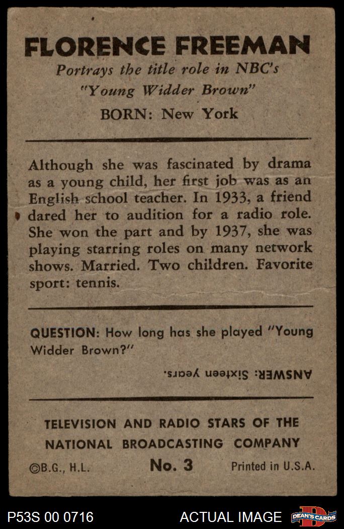 1953 Bowman T.V. & Radio NBC #3 Florence Freeman 1.5 - FAIR