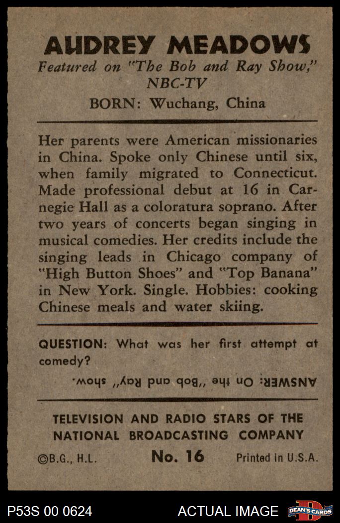 1953 Bowman T.V. & Radio NBC #16 Audrey Meadows 5 - EX